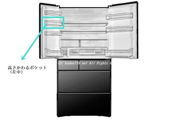 4.  > 日立冷蔵庫 冷蔵室ポケットヒダリナカ【高さかわるポケット】■R-WX74J-007